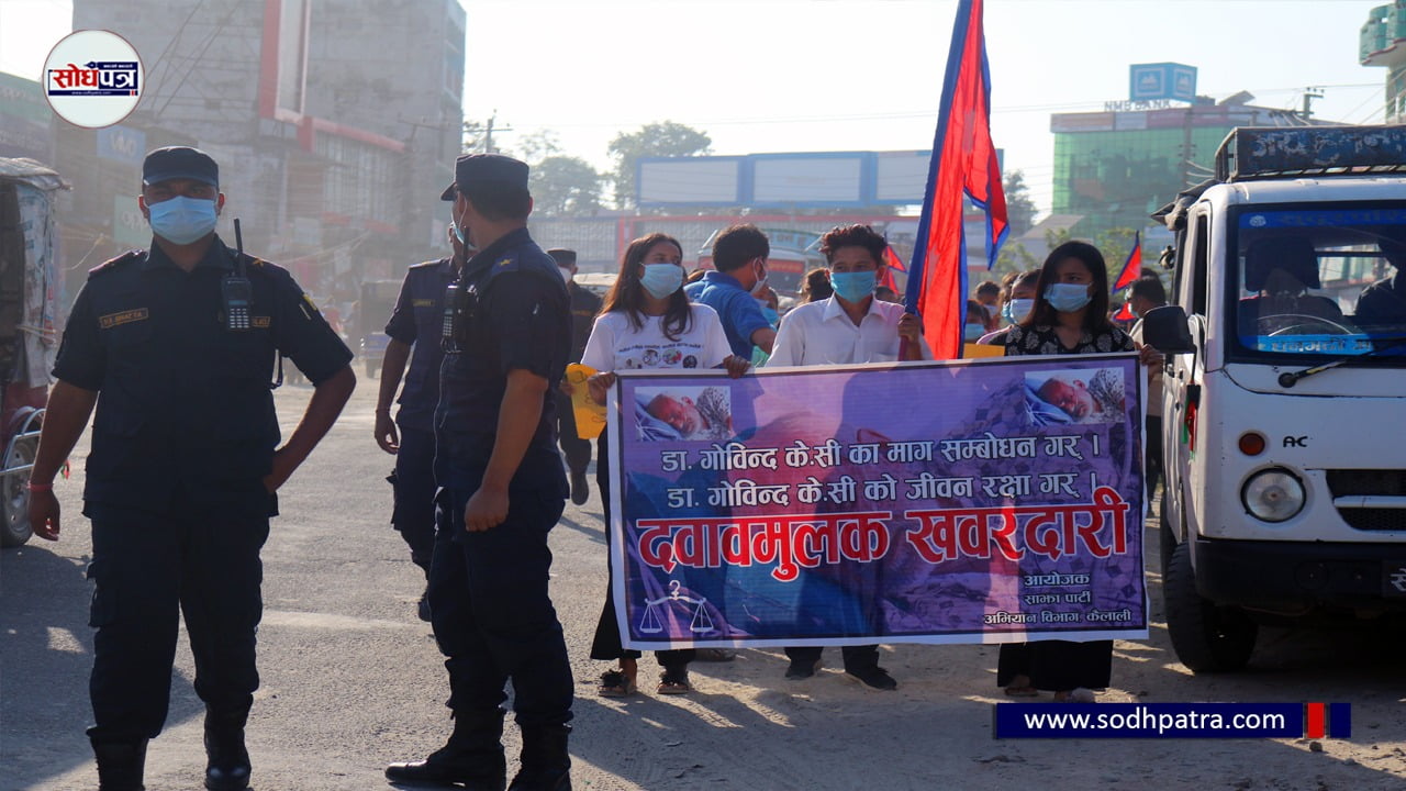 धनगढी: डा. गोविन्द केसीको जीवन रक्षा तथा उनले अगाडि सारेका माग सम्बोधन गनुपर्ने भन्दै साझा पार्टी कैलालीले शनिबार पनि धनगढीमा प्रदर्शन गरेको छ।