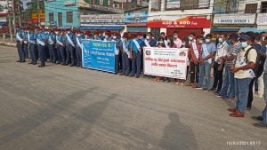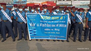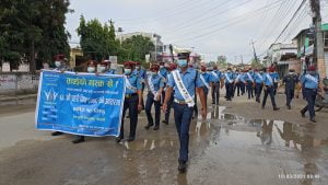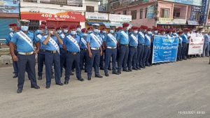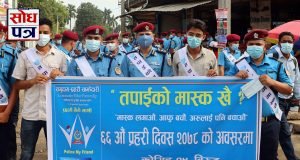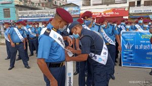 धनगढी : धनगढीमा ६६ औँ प्रहरी दिवसको अवसर पारी जिल्ला प्रहरी कार्यालय कैलाली र प्रदेश युवा परिषद् सुदूरपश्चिम प्रदेशले ब्यानर सहित “तपाईँको मास्क खै” र्यालीको आयोजना गरेको छ ।