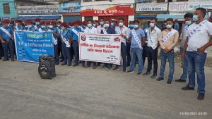 “मास्क लगाऔँ, आफू पनि बचौँ, अरूलाई पनि बचाऔँ” भन्ने नारा सहित आइतबार बिहान ८ बजे धनगढीको ट्राफिक चौराहा देखी पार्क मोड सम्म कोभिड १९ विरुद्धको सचेतनाका लागि मास्क वितरण कार्यक्रमको आयोजना गरिएको हो ।