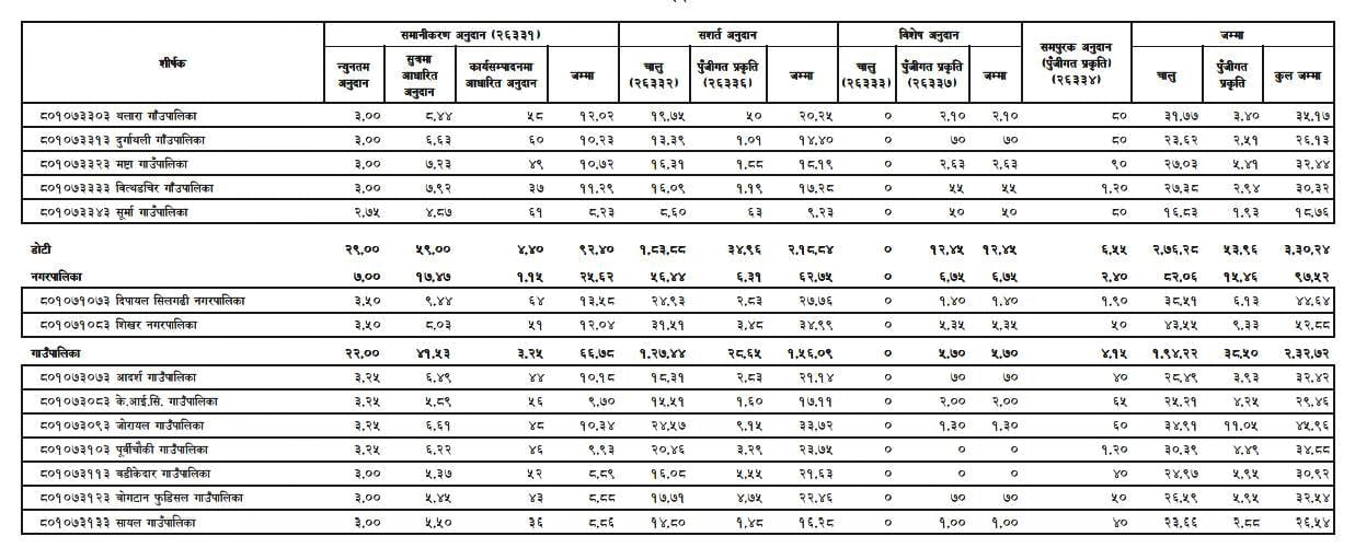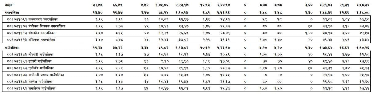 सुदूरपश्चिम प्रदेशलाई संघीय सरकारबाट १७ अर्ब ५५ करोड बजेट, कुन पालिकालाई कति ?
