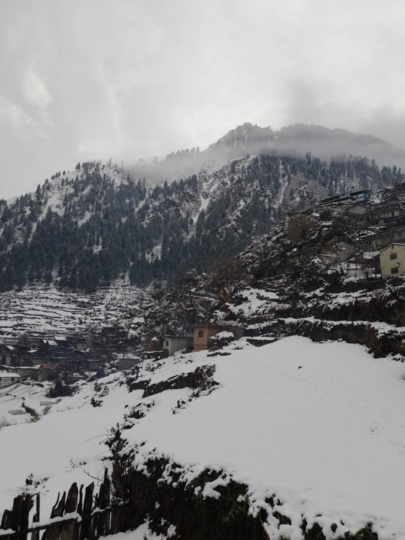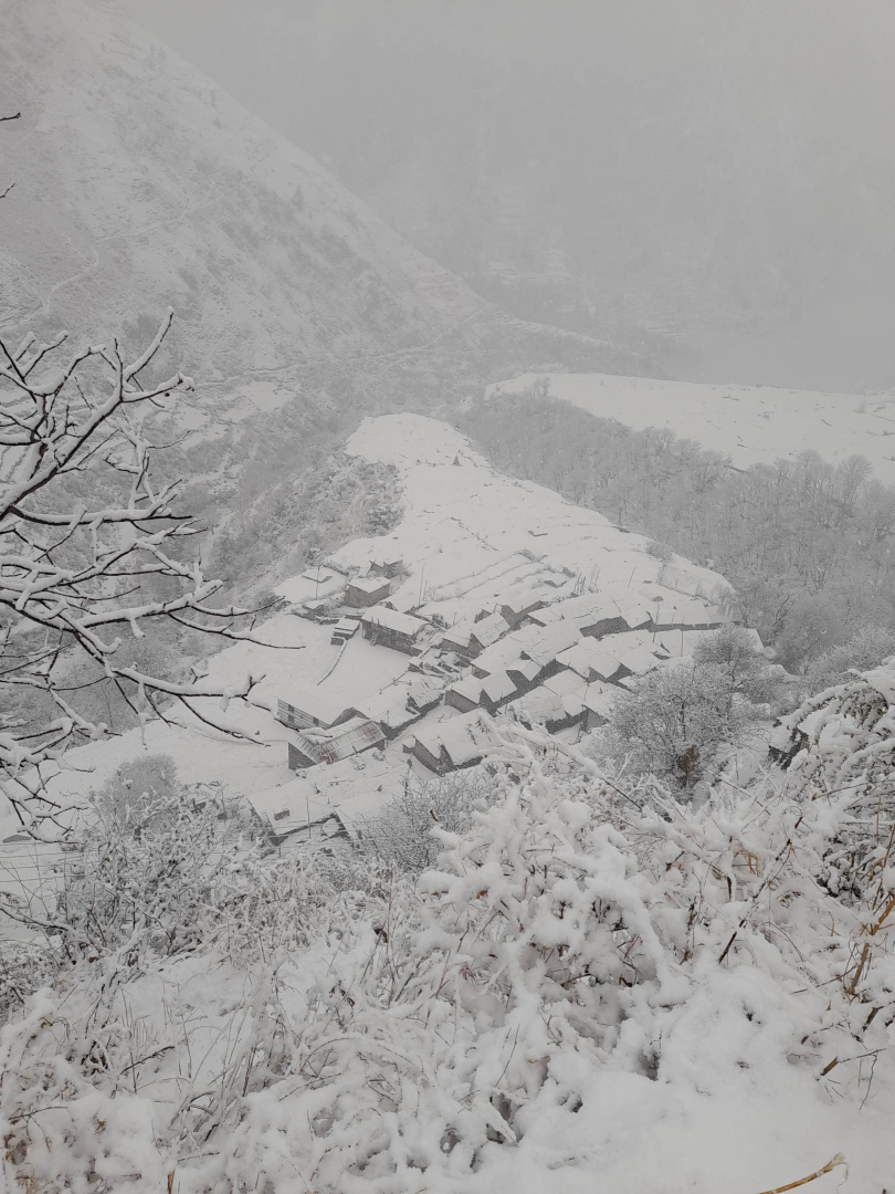 तस्बिरमा हेर्नुहोस् । हिउँको घुम्टो ओडेको  हुम्ला जिल्लाको सर्केगाड गाउँपालिका वडा.नं ७ रोडिकोट क्षेत्र ।