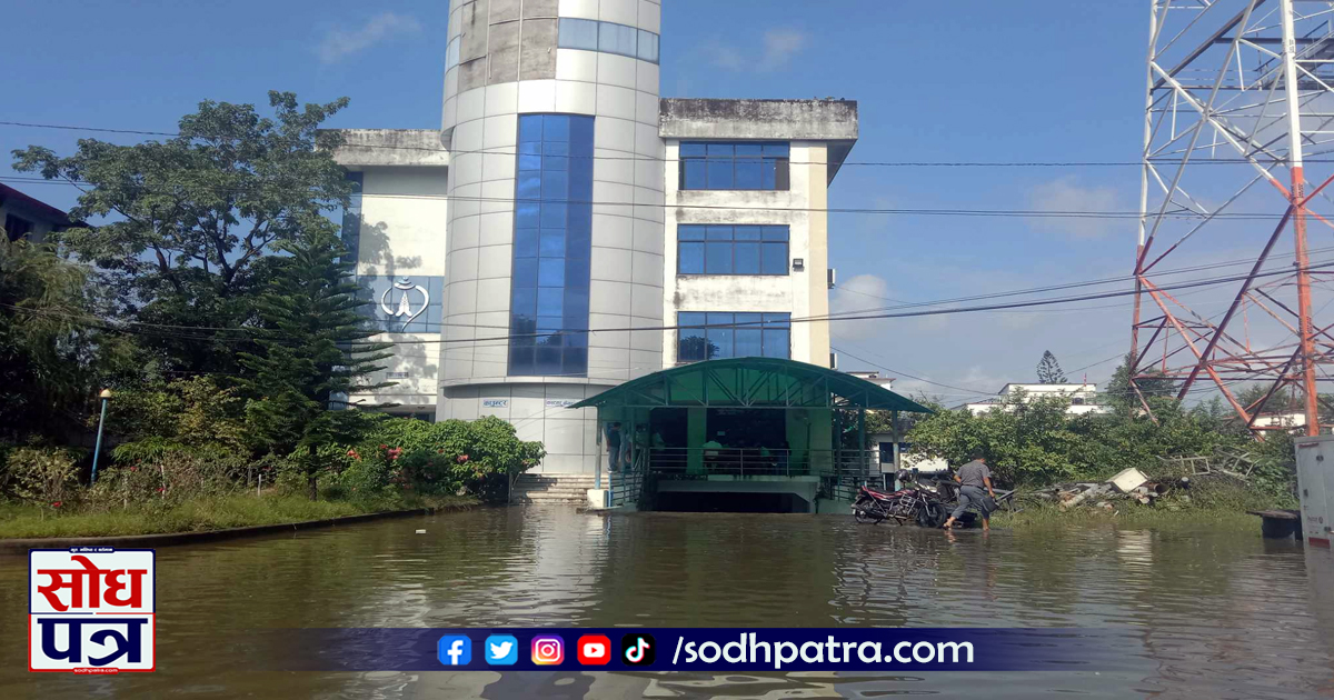 यसैगरी नेपाल टेलिकमको धनगढी कार्यालय परिसर भित्र पनि पानी भरीएको छ ।