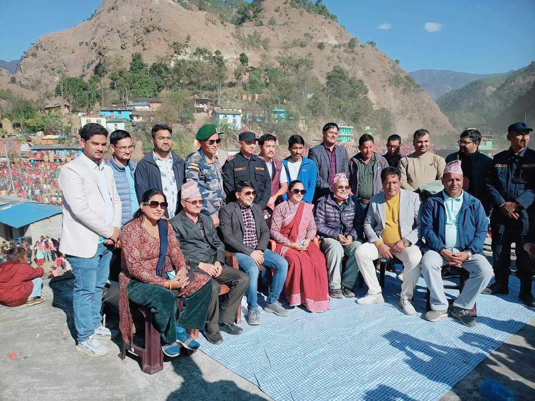 तस्बिरमा पुर्चौडी नगरपालिकाका कर्मचारी मेयर, मेयरका प्रत्याशी, प्रहरी अधिकृतहरू, प्रदेश सभा सदस्य र पूर्व प्रतिनिधि सभा सदस्य लगायतका व्यक्तिहरू