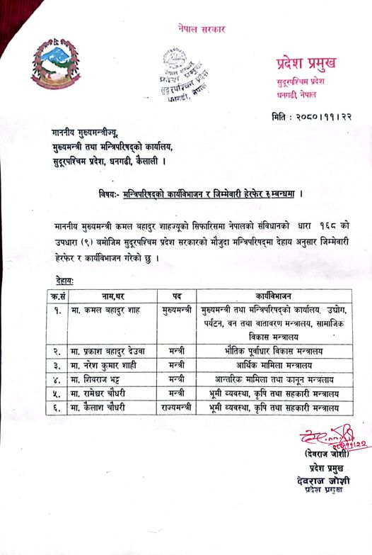 माओवादीका तीन मन्त्री बर्खास्त पछि यस्तो बन्याे सुदूरको मन्त्री परीषद र कार्यविभाजन ?