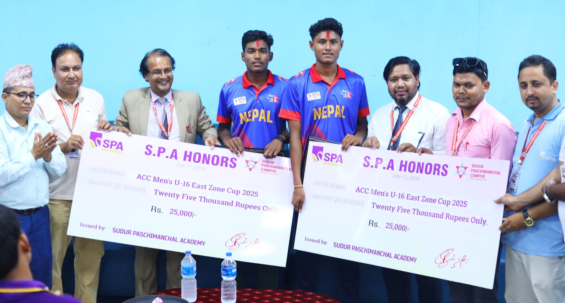 सम्मानित खेलाडीहरू हालै मलेसियामा सम्पन्न ‘एसीसी मेन्स यू-१६ ईस्ट जोन कप क्रिकेट प्रतियोगिता’मा सहभागी भई नेपाली यू-१६ राष्ट्रिय पुरुष क्रिकेट टोलीसँगै उपाधि जित्न सफल भएका थिए।