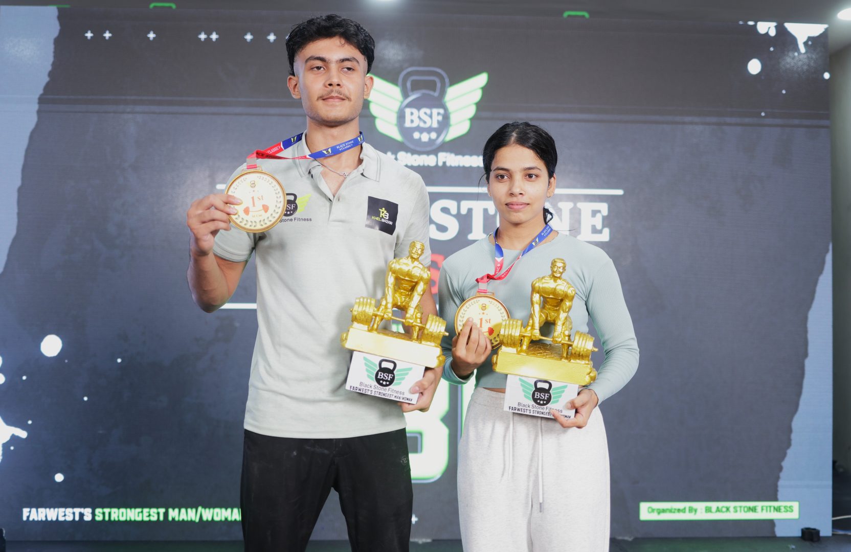 धनगढी : ब्ल्याक स्टोन फिटनेस, धनगढीको आयोजनामा असोज १० गते सम्पन्न ब्ल्याक स्टोन क्लासिक पावरलिफ्टिङ च्याम्पियनसिप २०८२ मा पुरुषतर्फ आशुतोष पाण्डे र महिलातर्फ अनुष्का सुनार फार–वेस्ट स्ट्रङ्गेस्ट पावरलिफ्टर को उपाधि जित्न सफल भएका छन् ।