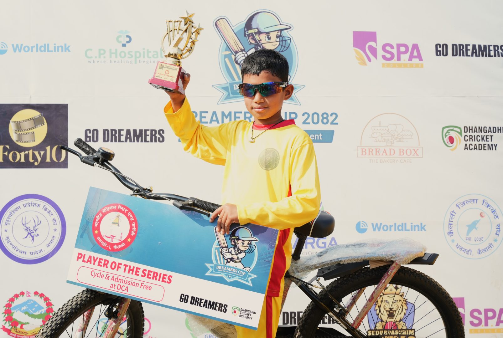 यस्तै प्रतियोगिता अवधिभर उत्कृष्ट प्रदर्शन गर्ने खेलाडीहरू क्रमशः प्लेयर अफ द सिरिज सत्यवती एकेडेमीका सन्देश बोगटीलाई साइकल र ट्रफी, बेस्ट ब्याट्सम्यान वइस्टर्न क्रिस्टल एकेडेमीका १५० रन प्रहार गर्ने खेलाडी कपिल जोशीलाई क्रिकेट ब्याट र ट्रफी, बेस्ट बलर सत्यवतीका ११ विकेट लिने खेलाडी आदर्श थापालाई जुत्ता र ट्रफी र प्रतियोगिताका उदयमान खेलाडी डिस्कोभरि स्कुलका रितिप चलाउनेलाई टेनिस क्रिकेट किट सेट र ट्रफी प्रदान गरिएको आयोजक गो ड्रिमर्सले जनाएको छ ।